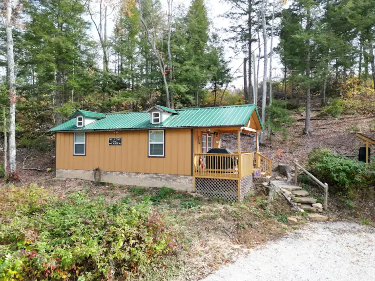Take a break and unwind in the beautiful Smokey Mountains in southern Kentucky. We are situated less than 5 miles from the famous Cumberland Falls! We are close to many hiking trails and water sports. This one bedroom, one bathroom cabin boasts a full kitchen and a washer and dryer. The deck provides a peaceful view of the beautiful forest as well as a great place to relax and grill your favorite meal! An air mattress is provided for additional guests. The darling little one-bedroom cabin is very secluded and surrounded by woods. There are rustic sandstone steps to take you from the parking area up to the cabin. The cabin has a deck with two chairs, a side table, and a propane grill. A fire pit sits off the deck if you want to enjoy the warmth and ambiance of a real flame or for roasting marshmallows.